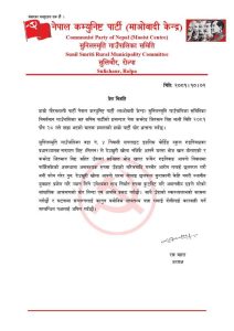 सुनिल स्मृति गाउँपालिका वडा नम्बर ४ निवासी सनलाईट इङलिस बोर्डिङ सकुलका प्रधानाध्यापक नारायण विष्टले सोही पालिका बस्ने जितमान बिष्ट २०८१ पौष २८ साझ भएको सांघातिक आक्रमण प्रति हामो पार्टी घोर भ्रतषना भ्रतसना गर्दछौं विज्ञप्ति भनिएको छ।
