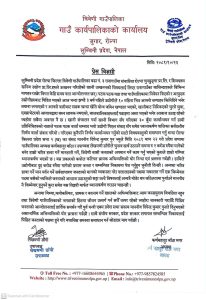 विज्ञप्तिमा भनिएको छ ‘लुम्बिनी प्रदेश रोल्पा जिल्ला त्रिवेणी गाउँपालिका वडा नं ३ रानागाउँमा संचालित रोल्पा चुनढुङ्गा प्रालि र शिवश्वरुप खनिज उद्योग प्रालि हरुले उत्खनन गरिरहेको खानी उत्खननको विषयलाई लिएर रानागाउँका बासिन्दाहरुले विभिन्न मागहरु राखेर विगत केहि समय यता आन्दोलनरत छन् ।